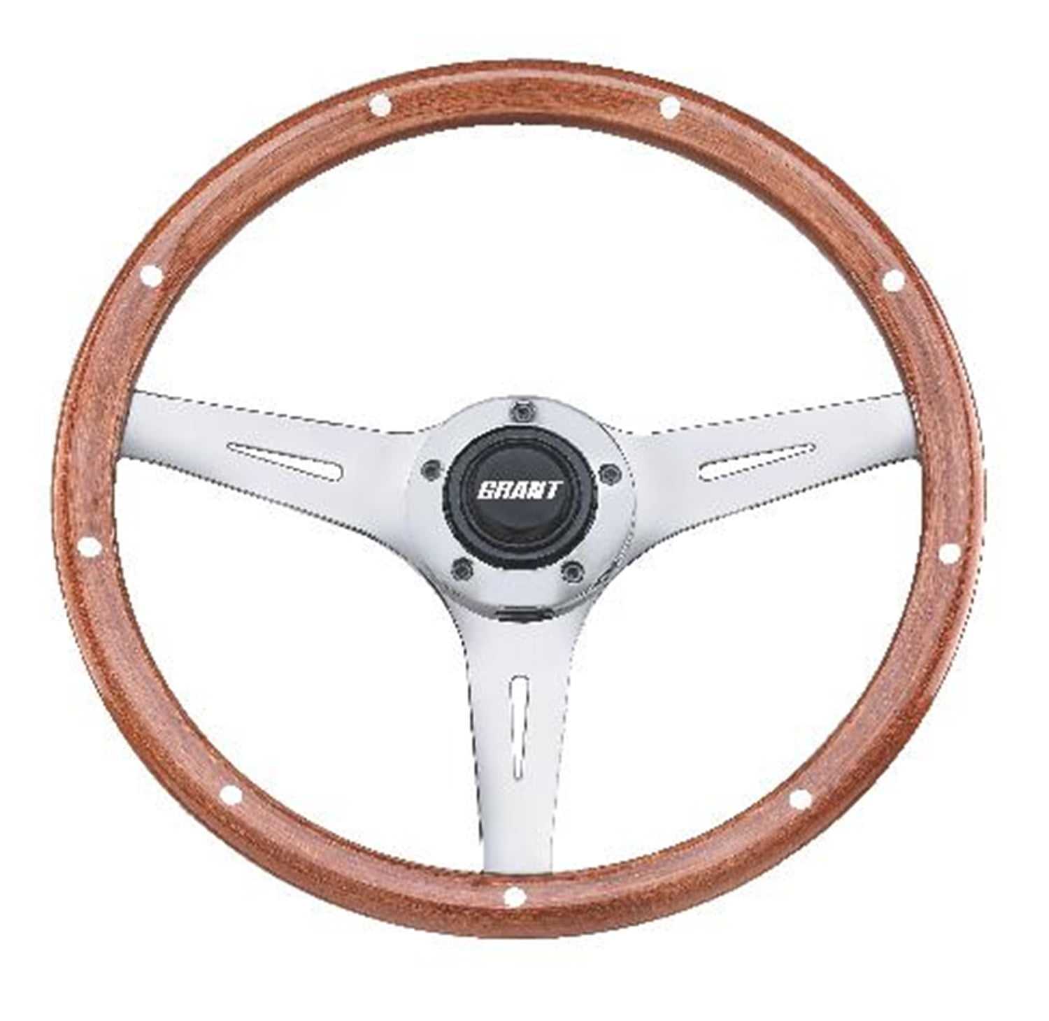 Grant 1175 Collectors Edition Steering Wheel 14 1 2 In Diameter 3 In Dish Mahogany Wood Grip W Rivets Polished Aluminum 3 Spoke Design Includes Styling Sleeve Walmart Com